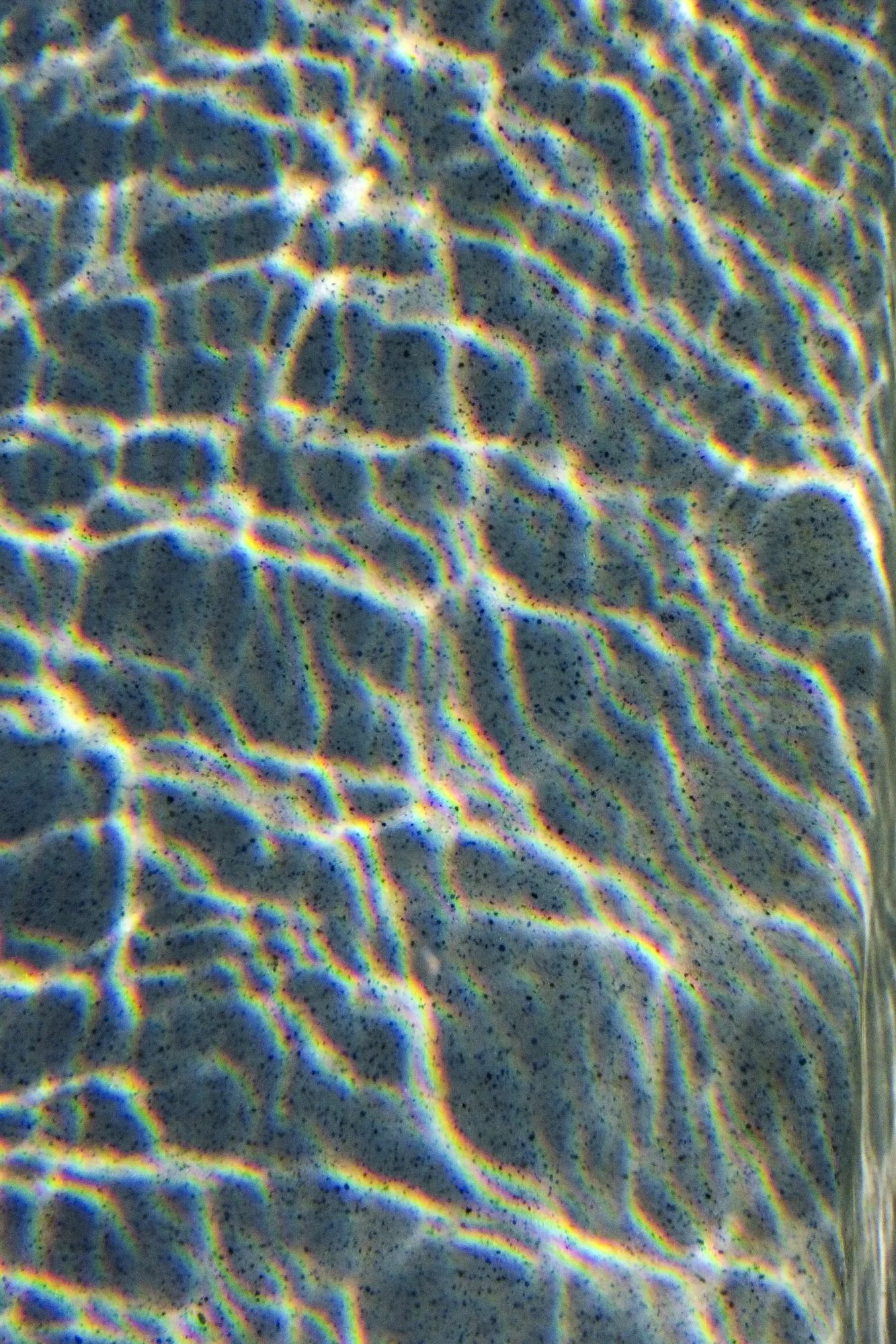 Abstraction of water and light in motion. The glacial water is a vivid blue.